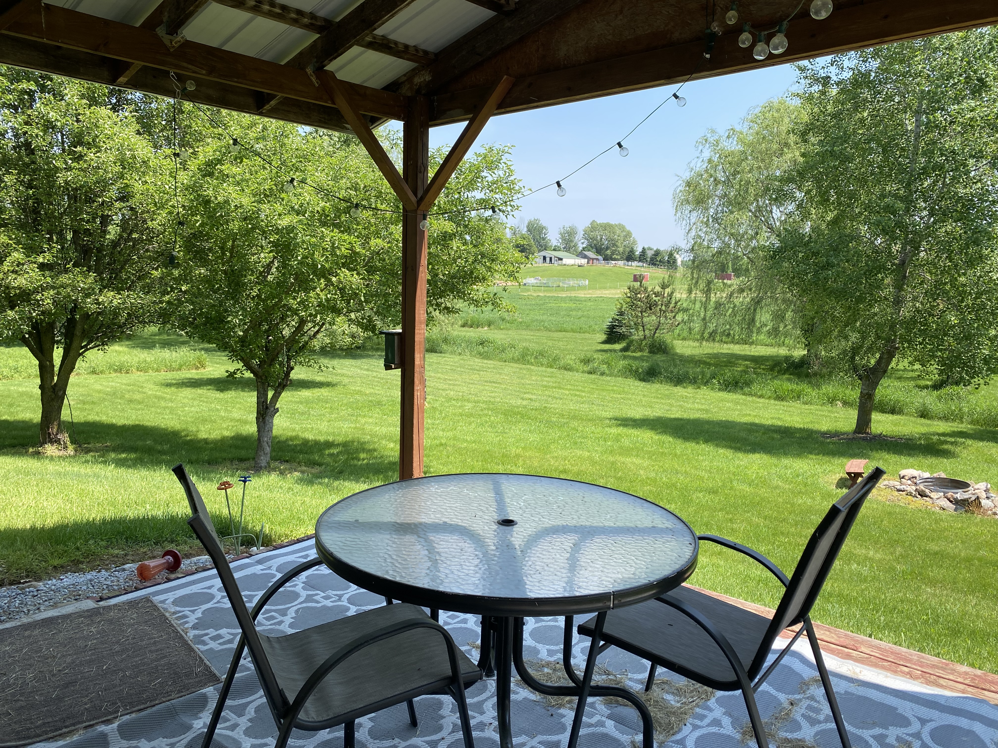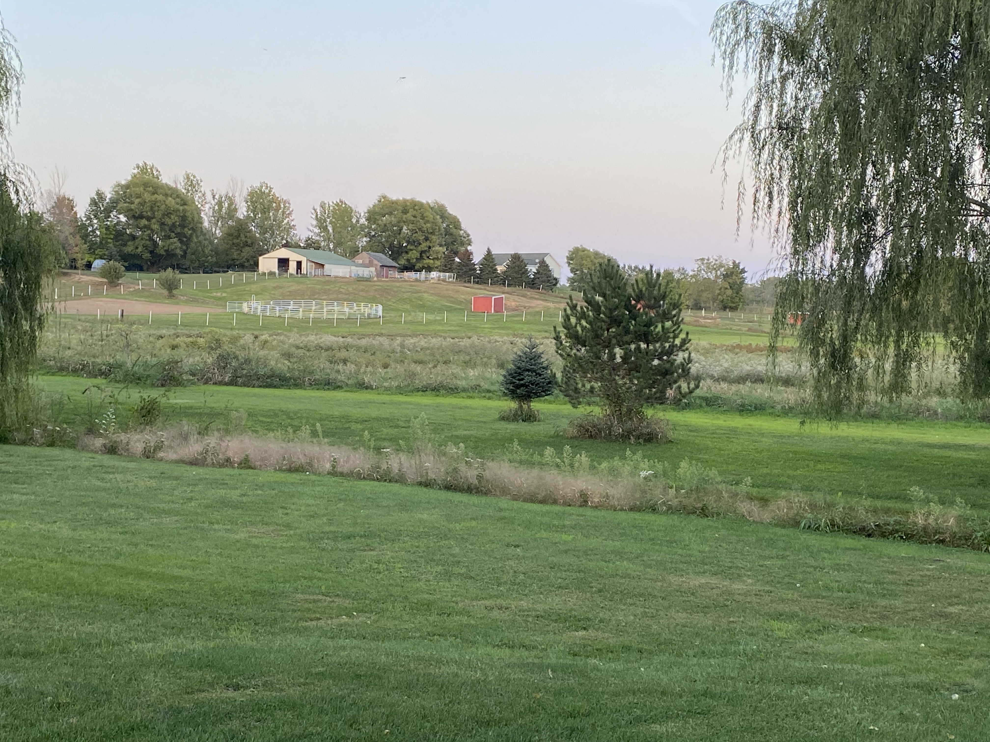 - 4 acres of privacy with walking trails, fire pit, view of local farms